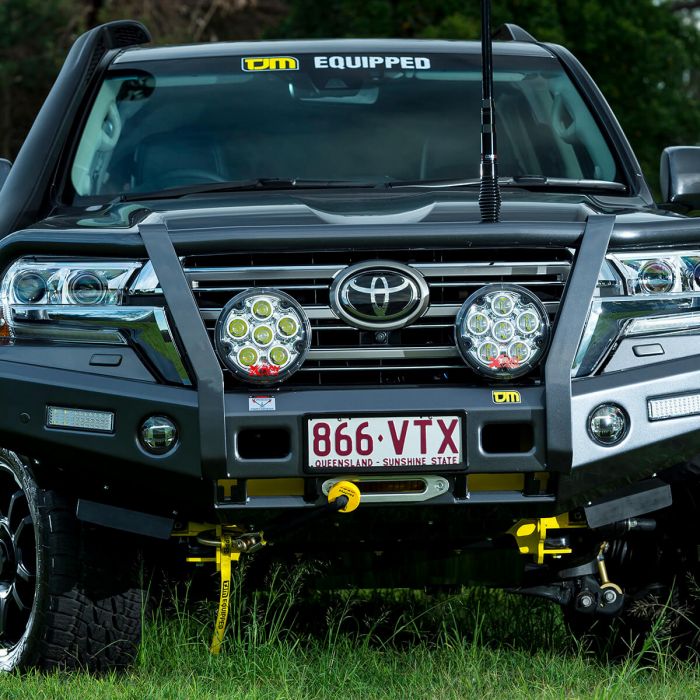 Full wrap cato straps and 63mm outer pipework provides added strength, damage deflection and headlight protection. This TJM Outback Bumper is 4x4 equipped with an intergrated steel winch-mount, integrated rated recovery tow points, LED fog lights, LED combination lights, and reinforced Hi-Lift jack points. For those overlanding adventures TJM include mounting points for installing slim line LED driving lights and twin aerial mounts. Combining classic styling with premium features, TJM's Outback bumper range offers uncompromised frontal protection for your 4x4.
